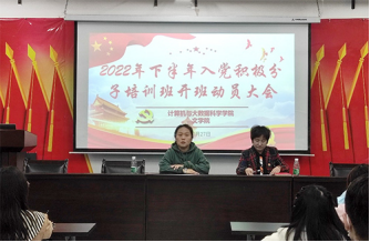 在全党和全国各族人民热烈庆祝党的二十大胜利召开的浓厚氛围中,中共beat365中文官方网站beat365中文官方网站党委分党校和中共beat365中文官方网站文学院党委分党校联合举办2022年下半年入党积极分子培训班,并于10月27日在文友楼204会议室召开了本次入党积极分子培训班开班动员大会。计算机学院专职组织员周波老师和文传学院专职组织员余蓓老师做动员报告。