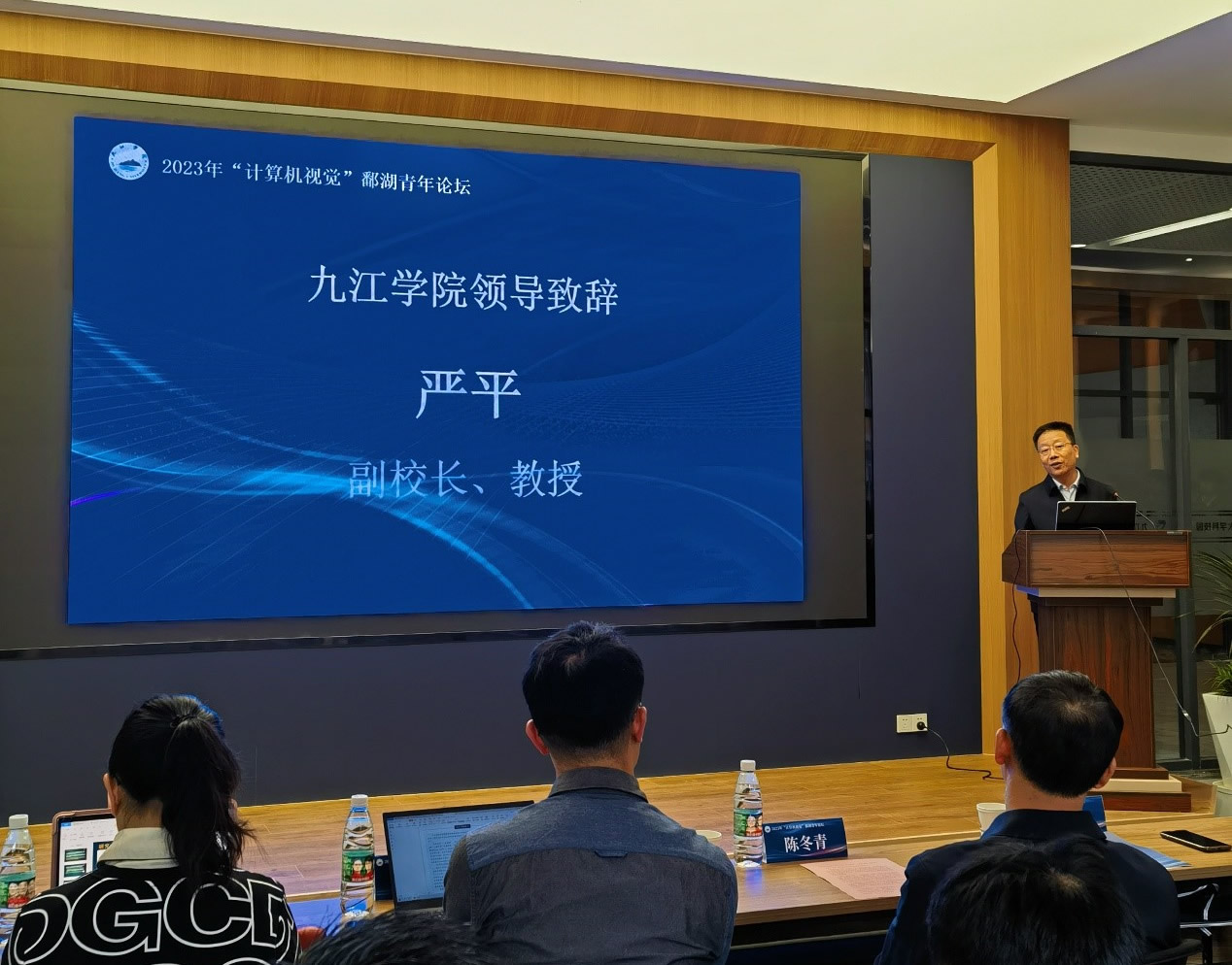 为促进校企对计算机视觉现状及未来发展趋势的交流研讨,推动计算机视觉技术在九江市电子信息相关企业的应用,助力九江数字经济高质量发展,4月21日至23日,“2023年‘计算机视觉’鄱湖青年论坛”在我校举办。副校长严平出席开幕式并致辞。九江市科学技术协会副主席陈冬青、beat365中文官方网站党政主要负责人、科研处相关负责人、九江市和我校大学科技园相关企业代表、beat365中文官方网站和电子信息工程学院的师生代表等参加。
