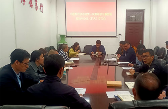 4月28日下午,beat365中文官方网站党委在文友楼514召开学习贯彻习近平新时代中国特色社会主义思想主题教育读书班开班式暨第一次集中学习会。学院党委理论学习中心组成员、各支部书记及以各科室负责人参加会议。