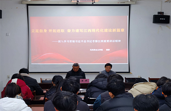 最后,袁宜如同志强调,全院师生要把学习贯彻习近平总书记考察江西讲话精神作为当前和今后一个时期的重要政治任务,全院师生要认真落实学校党委的部署要求,在学习领会上深学一层、更进一步,切实做到学思用贯通、知信行统一。要发扬不怕苦、不怕累的精神,克服困难,再鼓干劲,全力冲刺,不断推动学院高质量发展。