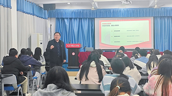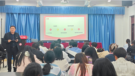 活动伊始,杨思迪副书记围绕“新时代大学生的核心素养”展开论述,从“素养概述” 切入,清晰界定核心素养是新时代大学生成长成才的关键内核,是连接个人发展与国家需求的重要纽带。 随后,杨思迪副书记分别从“政治素养”“思想与道德素养”“实践与专业素养”“国际视野与其他素养”这几个层面对新时代大学生应该具备的核心素养进行阐述。