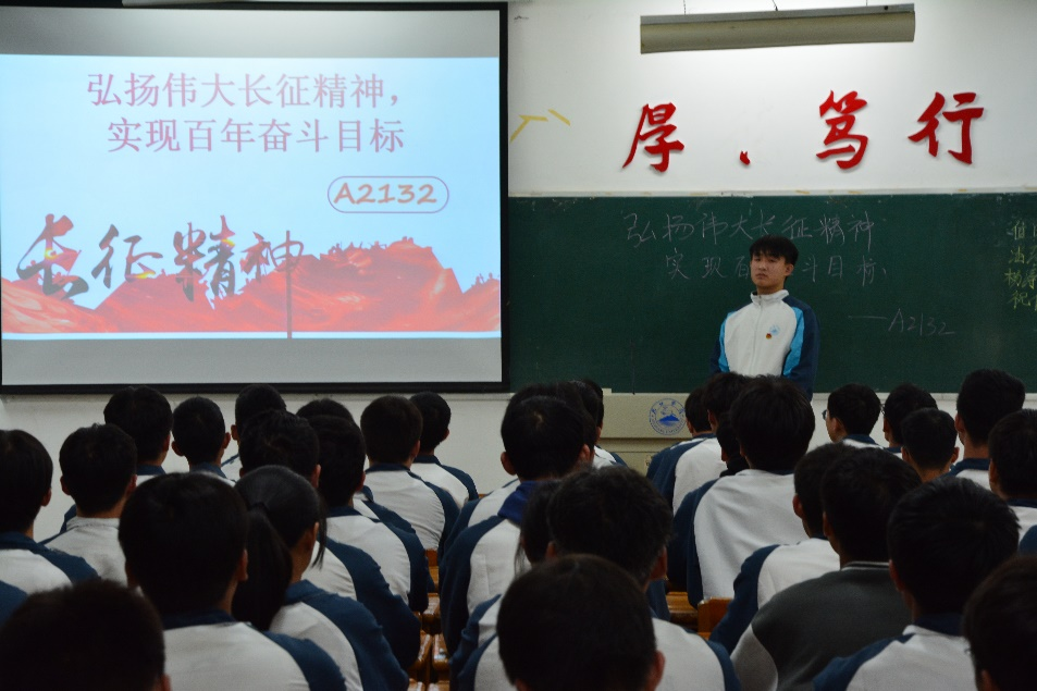 活动中,各班级团支书为同学们讲述长征精神,带领同学们重温了中国共产党长征的那些光荣岁月,以此来庆祝长征胜利八十五周年和表达对长征不怕艰苦、不畏牺牲的精神的敬仰。