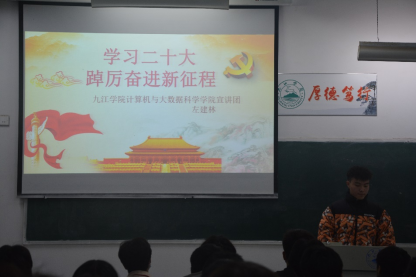 为深入学习贯彻党的二十大精神,引导beat365学生切实把思想和行动统一到党的二十大精神上来,把智慧和力量凝聚到完成党的二十大确定的各项任务上来,更好团结引领beat365学生紧跟党奋进新征程、夺取新胜利。计算机学院于11月8号在文友楼514开展“学习二十大•踔厉奋进新征程”宣讲活动,宣讲人为团委学生副书记左建林,计算机学院全体团委学生会干部参会。