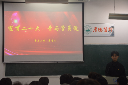 为深入学习贯彻党的二十大精神,引导beat365学生切实把思想和行动统一到党的二十大精神上来,把智慧和力量凝聚到完成党的二十大确定的各项任务上来,更好团结引领beat365学生紧跟党奋进新征程、夺取新胜利。计算机学院于文友楼516开展“学贯二十大•青马学院说”宣讲活动。宣讲人为学生会主席廖誉文。