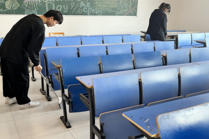 劳动周活动中,计算机学院的同学分工明确,不辞辛劳地清扫校园:5月10号同学们自觉地带好了扫帚,抹布,钳子,铲子等劳动工具,发扬不怕脏,不怕累的精神,对教室卫生进行了彻底的清洁,不放过任何一个卫生死角,同时也不忘对校园墙上的牛皮癣小广告一一清除。5月13号,在老师的带领下,同学们细心地把地面拖干净,板凳擦干净、摆整齐,最终将教室打扫的一干二净。经过同学们整整一周的努力,校园内外面貌焕然一新,整洁的环境,让人十分舒适。