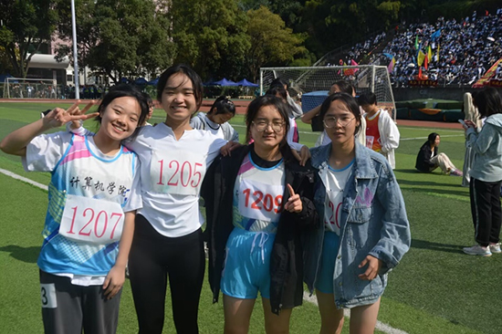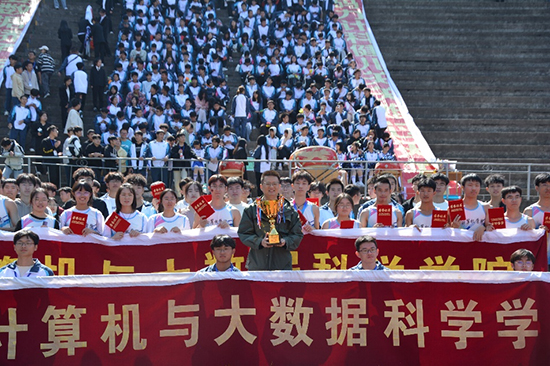 计算机学院再次荣获精神文明奖,个人赛、团体赛等多个奖项以及团体奖总分取得第八名的好成绩,这是全体计算机学院师生团结协作、顽强拼搏所换来的荣誉。运动会结束后,计算机学院运动员们在体育部的带领下一起手持横幅绕场行走,并与观众席成员积极互动,共同合影,培养和增强了大家的合作精神和集体荣誉感。