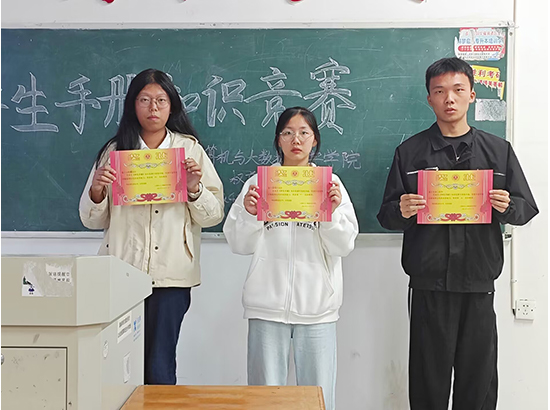 此次竞赛以笔试的形式进行,内容涉及学生手册中的校园文化、行为规范、奖惩制度等关键章节,涵盖了学生行为规范、学术诚信、校园安全等多个方面,全面考察了学生的综合知识水平。比赛现场气氛紧张而激烈,选手们沉着应对,纷纷展现出扎实的知识功底。有的眉头紧锁,思考着复杂的题目;有的则下笔如飞,对自己的答案充满自信。整个考场只能听见笔尖在试卷上沙沙作响的声音,那是知识流淌的旋律。最终经过激烈的角逐,在现场50余个优秀选手中选出了三位佼佼者,分别获得一二三等奖,并颁发荣誉证书,以资鼓励。