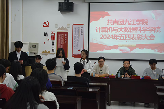 为弘扬五四精神,激励青年学生继承和发扬“爱国、进步、民主、科学”的五四精神;对在运动会中取得优异成绩的运动员和团队进行表彰,促进学生德智体美劳全面发展;加强团支部的组织建设,引导团员青年树立正确的世界观、人生观和价值观。11月15日,计算机学院在文友楼312依次召开了“五四表彰大会”、“校运会表彰大会”、“团支部大会”,参会人员有各班团支书、获奖代表及优秀运动员。