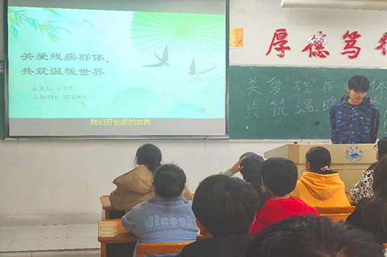 12月3日,是联合国设立关爱残疾人的节日,为倡导同学们关爱弱势群体,让弱势群体感受温暖,促进社会共融。当天晚上,计算机学院于文友楼各教室开展了“聚焦残疾群体,以爱之名共筑温暖”主题团日活动。
