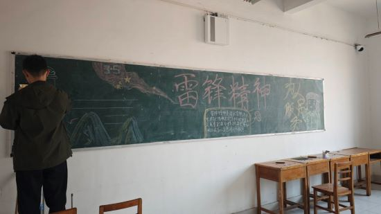 3月9日,文友楼的各班,一幅幅精美的雷锋月主题黑板报成为了校园里一道亮丽的风景线。同学们充分发挥自己的创意与才华,用五彩的粉笔在黑板上描绘出雷锋的光辉形象,写下一句句感人至深的雷锋语录和对雷锋精神的深刻感悟。有的板报以雷锋的经典事迹为画面主体,展现他为人民服务的坚定身影;有的则着重体现新时代背景下雷锋精神的传承与延续,激励大家勇担时代使命。这些黑板报不仅美化了校园环境,更成为了传播雷锋精神的重要阵地。