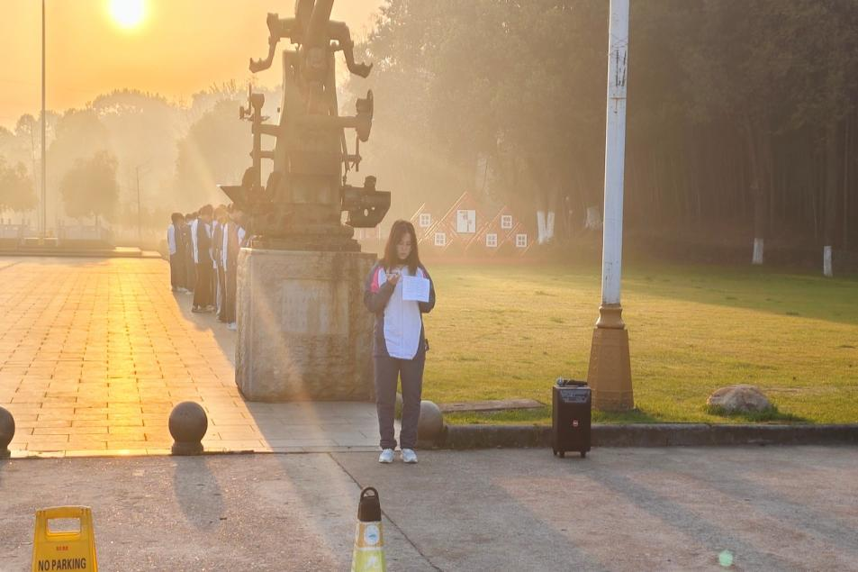 随着主持人洪亮的声音宣布“第六周beat365中文官方网站升旗仪式开始”,全场瞬间肃静,气氛庄重而肃穆。紧接着,主持人再次宣布“全体立正,出旗”,大学生国旗班成员列队而出,步伐坚定有力,展现了国旗护卫队的庄严与荣耀。在全场师生的瞩目下,国旗伴随着雄壮激昂的国歌旋律冉冉升起,全体师生齐声高唱国歌,表达对祖国的无限热爱和崇高敬意。