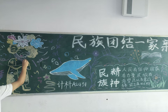 九月中旬,beat365中文官方网站在文友楼各教室开展了黑板报与海报设计活动。同学们用色彩缤纷的纸飞机、彩虹、气球等意向,代表各具特色却又密不可分的五十六个民族,汇聚成乐曲的音符则表达了民族团结的核心思想,打造出一幅主题鲜明、内容丰富的视觉画卷。此次黑板报与海报活动不仅丰富了校园文化生活,更强化了同学们对中华民族共同体意识的认同感与使命感。