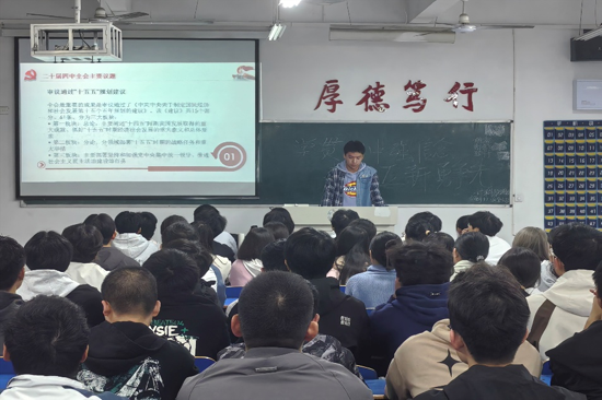 11月5日,在文友楼各教室同步开展“学贯‘四中’强信念,青春‘五新’勇争先”主题团日活动,活动在激昂的共青团团歌声中拉开帷幕,各班主持人首先介绍活动背景与意义,强调二十届四中全会精神对科技自立自强的重要指导价值。随后,主持人通过精心制作的PPT,系统讲解二十届四中全会精神的核心要义与“五新”的具体定义;为避免理论学习流于表面,还特别搜集国家在芯片、操作系统、人工智能等“卡脖子”技术领域寻求突破的新闻案例,以“案例式解读”帮助同学们直观感受“科技强国”的紧迫性与重要性。整场活动氛围庄重而热烈,同学们认真聆听、不时记录,对“如何将个人专业与国家需求结合”有了更清晰的思考。