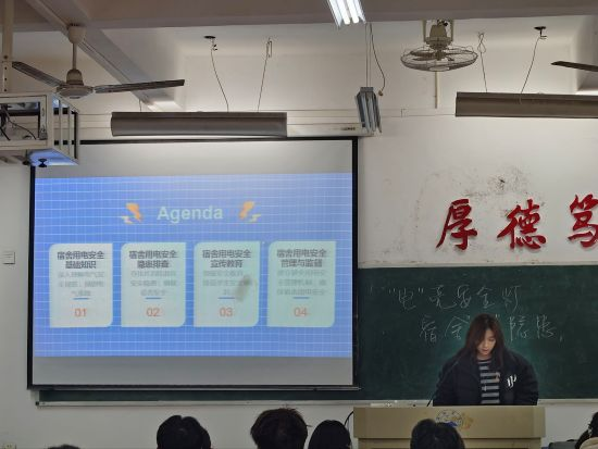 12月4日,beat365中文官方网站于文友楼开展“‘电’亮安全灯,宿舍‘零’隐患”主题班会活动。此次活动由班级团支书,围绕宿舍用电安全展开讲解。班会过程中,团支书通过播放违规用电事故案例视频、展示宿舍安全隐患图片等形式,直观讲解私拉乱接电线、使用大功率违规电器的危害,明确宿舍用电“禁止清单”。同时,团支书分享了宿舍安全自查小技巧,插座老化、充电器长期不拔等常见隐患,引导同学们养成“人走断电”的良好习惯,让安全规范入脑入心。