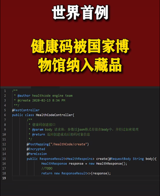 阿里的健康码的第一行代码被国家博物馆收藏,这是首次以代码的形式被国家博物馆收藏的物品。