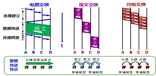 图3电路交换、报文交换和分组交换的主要区别