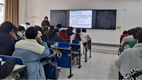 2025年3月18日下午,数据科学与大数据技术教研室郭景娟老师在计科A2462/63班开展《离散数学》公开教学,数据科学与大数据技术教研室以及其他教研室的老师进行学习观摩。教学内容围绕离散数学中的逻辑推理与证明方法展开,通过生动的案例展示了如何利用离散数学中的逻辑规则和证明方法,构建和验证自然语言推理系统。本次公共课,郭老师采用问题导向和互动式等教学方法,通过提问、讨论等形式,引导学生主动思考,教学内容由浅入深、层层递进,学生积极参与,学习热情高,较好地完成了教学目标,达到了良好的教学效果。通过自然推理系统的严格规则和步骤训练,培养学生严谨的思维习惯和提升学生的逻辑思维能力,并通过逻辑证明的确定性和可靠性,引导学生理解诚信的重要性,培养诚实守信的品质。