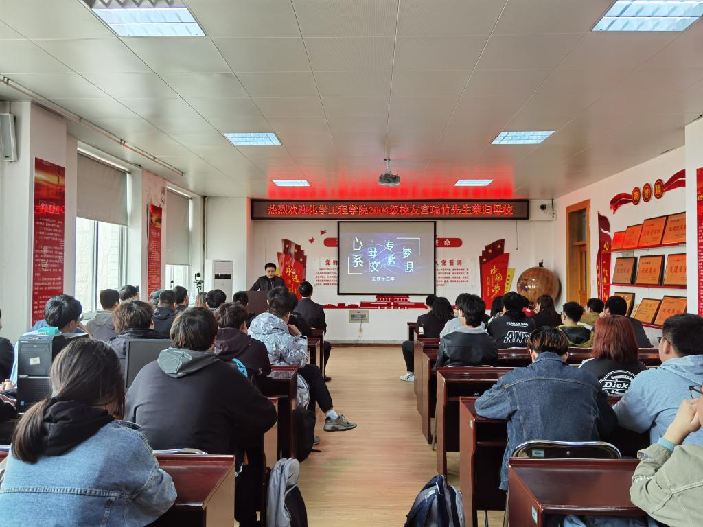 宫瑞竹是九游2004级化工优创专业校友,现任巨化集团浙江晋巨化工有限公司人力资源部副部长。他先以一首打油诗作为开场白“化院毕业初入行,意气风发斗志昂。工艺营销和人力,酸甜苦辣心中藏。”宫瑞竹说道,自从毕业以来,虽然每天都是忙碌奔波,也想过退缩放弃,但他相信付出终有回报,方向没错终会成功。正是由于自己的努力和赶上的机遇,毛遂自荐,敢于发声,才会让自己实现梦想,最终变大变强。他结合自身的学习、就业经历以及公司的招聘标准,鼓励同学们准备要趁早、学习要专一、态度要诚恳,强调学好专业课的重要性,并寄予同学们在今后学习或者工作的道路上,要学会复杂寻找简单。