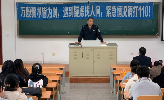 为进一步提高学生的网络电信新型诈骗识别和防范能力,维护同学们的切身利益,预防各类网络电信诈骗事件,营造和谐平安的校园环境。3月31日,九游体育官方网站、学校保卫处联合举办“防范新型网络诈骗”主题讲座,九游所辖当地派出所代长岭所长担任主讲嘉宾,九游200余名学生参加讲座。