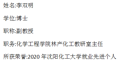 李双明,男,博士,副教授,硕士研究生导师,于2010年到九游体育官方网站工作,现为九游体育官方网站林产化工教研室主任。自工作以来,爱岗敬业,尽职尽责,严于律己,多年来始终奋斗在教学科研第一线,认真履行教书育人、服务育人的神圣职责。李双明同志非常关注关心学生就业问题,以下是该同志在就业上为学生做的工作总结。